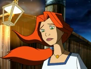 Occasionally, she wears a long pale-blue hooded cloak. She typically wears it whenever she’s traveling, but she’ll also wear the cloak depending on the weather conditions. She can be seen attired with it on in Green Mountain Boys, Washington Takes Command, The First Fourth of July, Captain Molly, American Crisis, Across the Delaware, An American in Paris, Valley Forge, The New Frontier, and The Great Galvez.